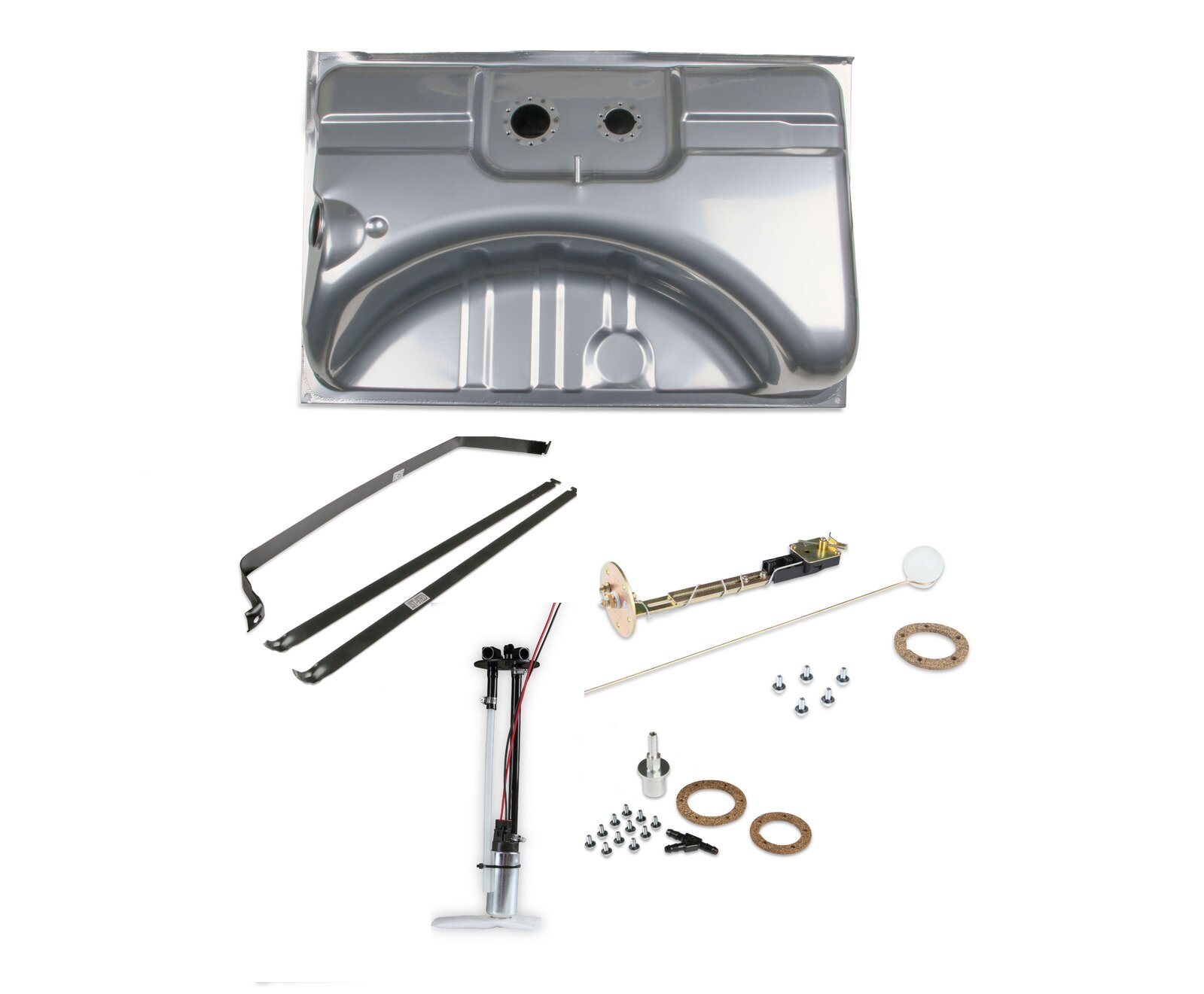 Holley and Sniper will help you to complete your EFI swap with our new EFI Conversion Fuel Tanks. Each tank is a direct fit for your application-no modifications necessary. The kit includes the tank, a 255 lph fuel pump, internal baffling, and a fuel level sender. The tank is powder coated for corrosion resistance and great looks. These tank kits are a complete solution for your EFI project! ***Steel filler neck is not included. You must use your existing stock filler neck or purchase one through restoration suppliers. Supports up to 550 EFI (@ 60 PSI at 13.5 Volts / 10.4 AMP Draw) Size is: 29-3/4" x 19-1/4" x 10-3/8"